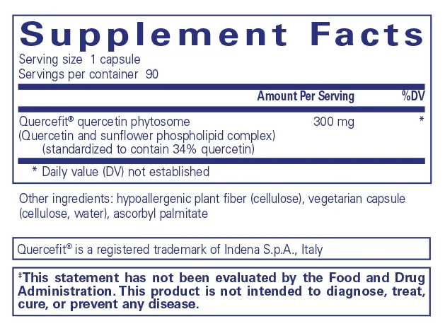 Quercetin is a flavonoid known for its support of cell health and the immune system. Research suggests that quercetin supports the function of SIRT1. This protein plays a role in the body’s process of cleaning out older cells to regenerate newer cells (called autophagy). Quercetin also increases the body’s antioxidant capacity in part by promoting healthy levels of glutathione, an antioxidant. In a pilot trial with adults, QuerceFit® supported antioxidant defenses and helped support respiratory function and nasal comfort. Other research suggests that quercetin helps to stabilize overeager mast cells (involved in immune responses).‡