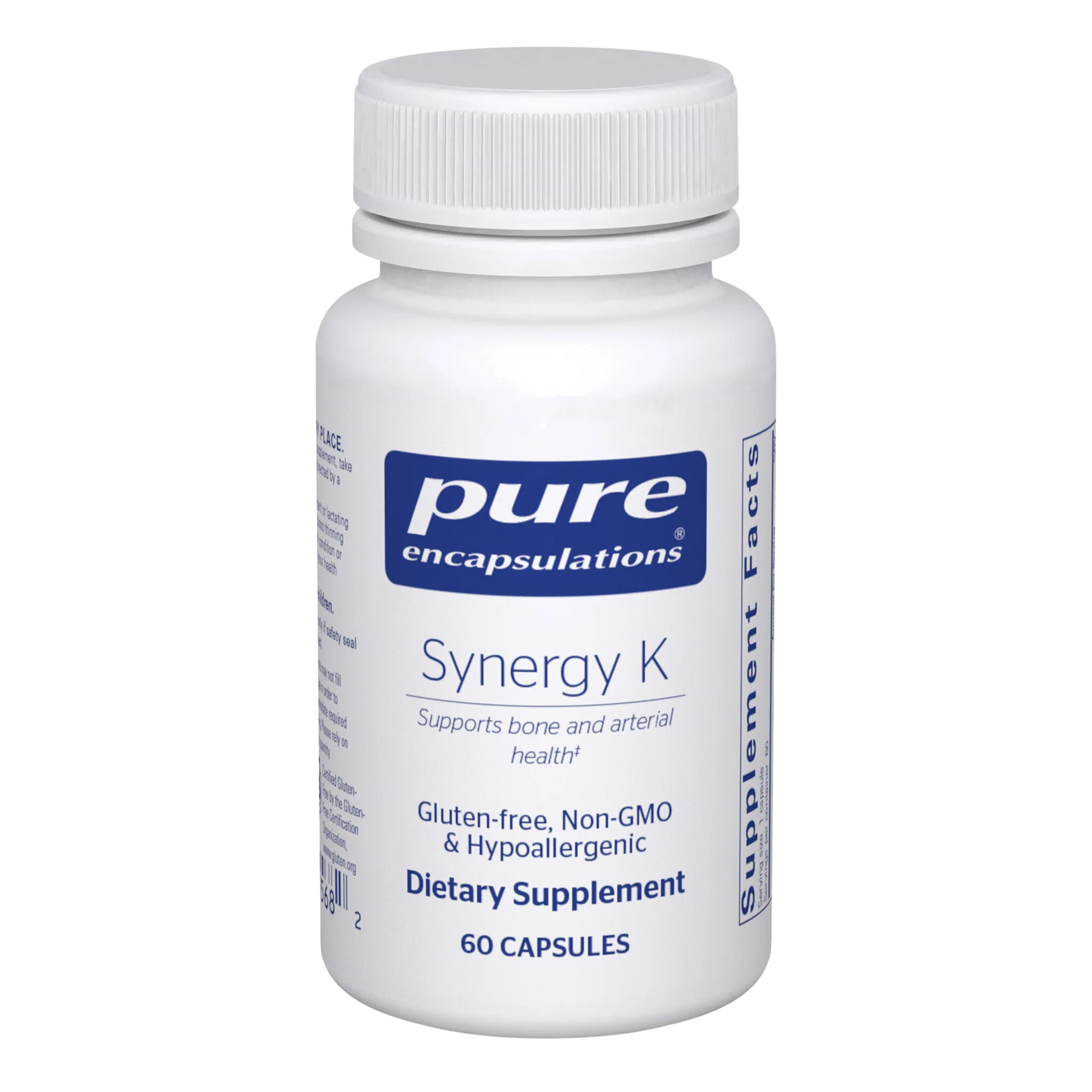 Synergy K provides an important blend of vitamin K1, vitamin K2 (as MK-4 and MK-7) and vitamin D. This vitamin K supplement is designed to support healthy calcium utilization to maintain healthy bones and blood vessels.‡