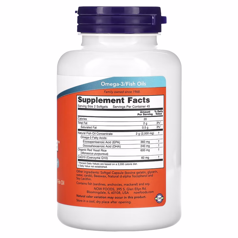 Red Yeast Rice (RYR) is the natural product of the fermentation of rice with Red Yeast (Monascus purpureus). For centuries, RYR has been used as a flavouring and colouring agent in Asian cuisine, and has been valued by traditional Asian herbalists as well. NOW® Red Omega™ is carefully produced to avoid the presence of citrinin, an unwanted by-product of the RYR fermentation process. This product is further enhanced with the addition of CoQ10 and Omega-3 Fish Oil to support healthy cardiovascular function.