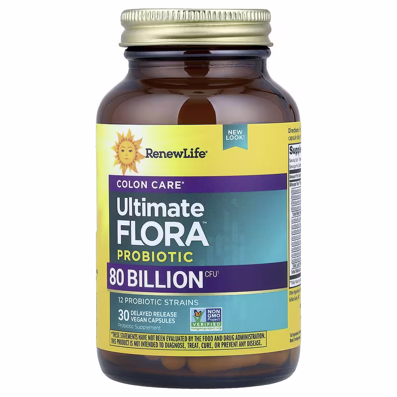 Ultimate Floraâ„¢ 80 Billion Colon Care Probiotic is an extra strength formula with 12 specially selected strains designed to re-establish digestive balance, help relieve occasional constipation, and support digestive health. It contains more Bifidobacteria than Lactobacilli to help provide more beneficial bacteria in the colon.