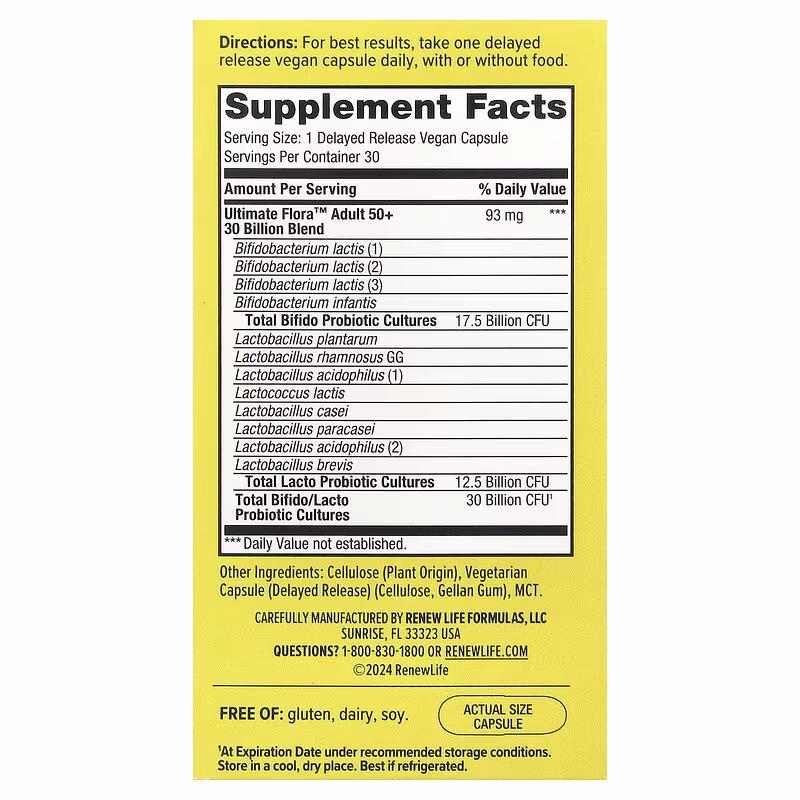 Renew Life, Ultimate Probiotic Floraâ„¢, Adult 50+ , 30 Billion CFU, 30 Delayed Release Vegan Capsules