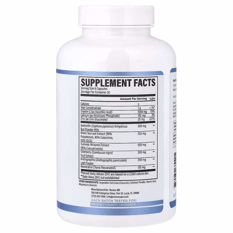 | Vitamin C (as Ascorbic Acid) | 1000 mg | 1111% |