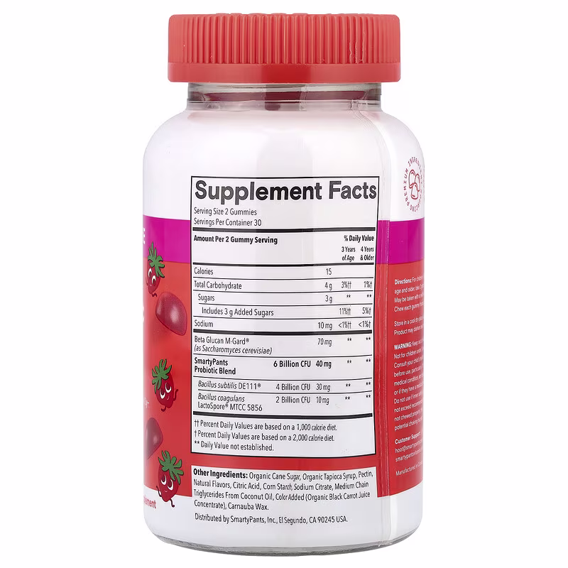 | SmartyPants Probiotic Blend 6 Billion CFU Bacillus subtilis DE11® 4 Billion CFU Bacillus coagulans LactoSpore® MTCC 5856 2 Billion CFU |