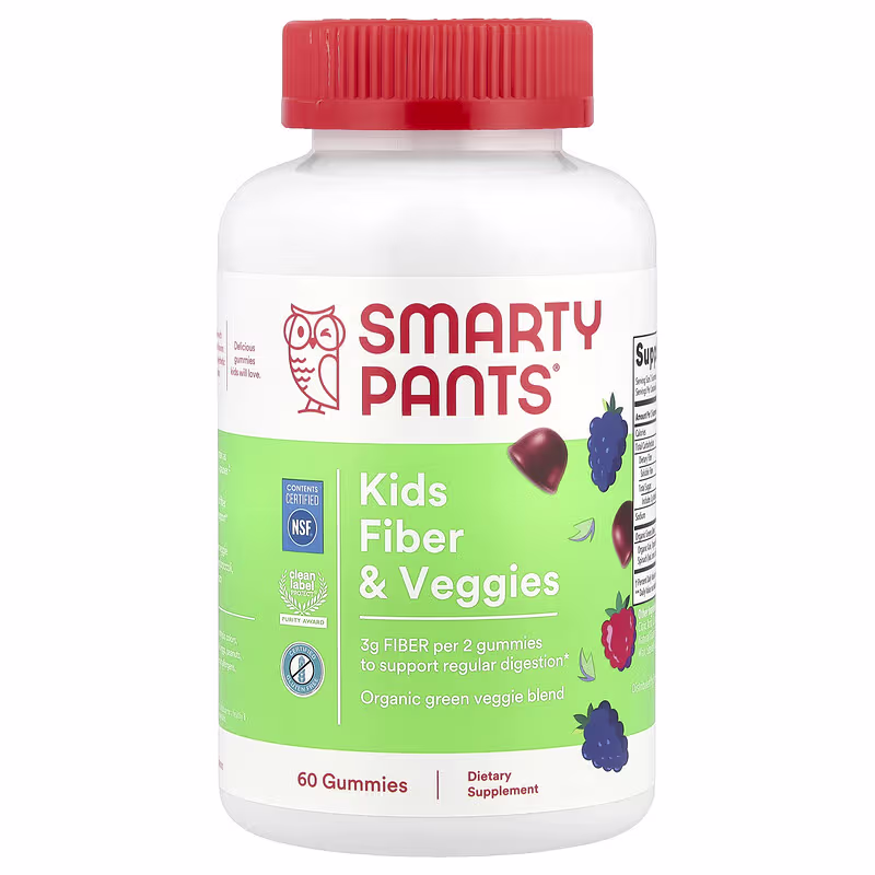 SmartyPants Kids Fibre & Veggies is specifically formulated to support regular digestion in kids 4+ with 3 g of prebiotic dietary fibre, inulin, and a thoughtful organic green veggie blend of organic kale, spinach, and broccoli.