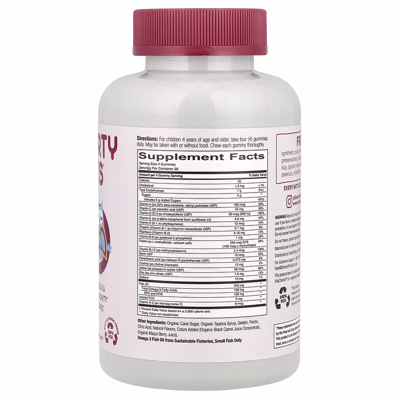 For children aged 4 years and older, take four (4) gummies daily. May be taken with or without food. Chew each gummy thoroughly.