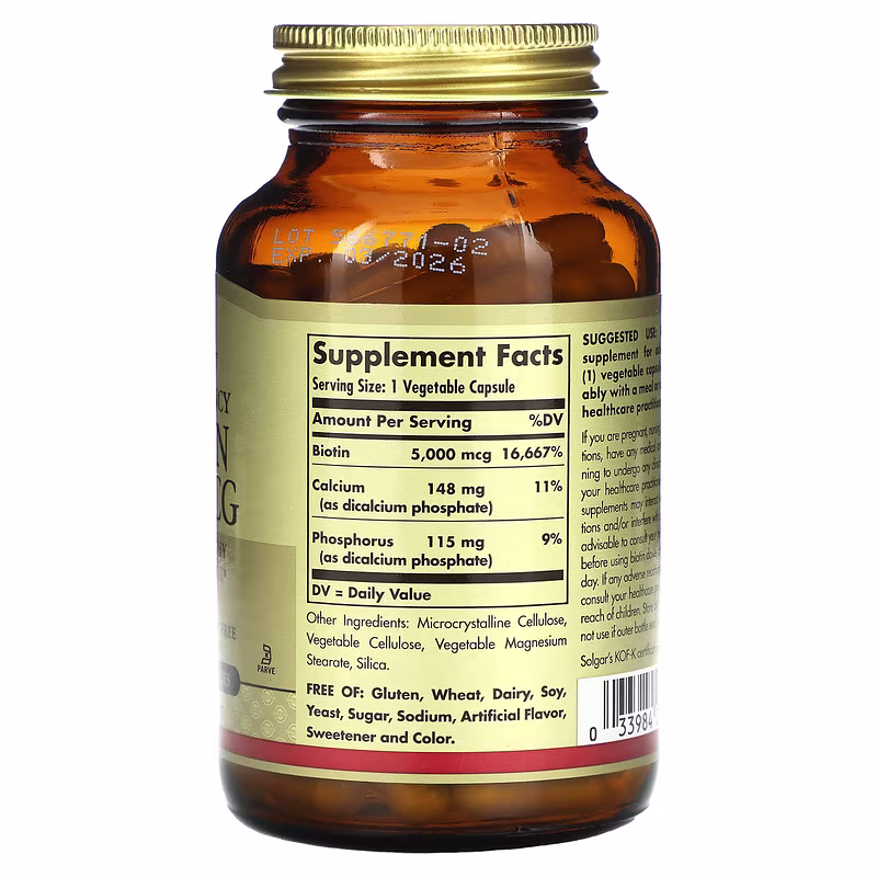 Solgar, Biotin, 5,000 mcg, 100 Vegetable Capsules