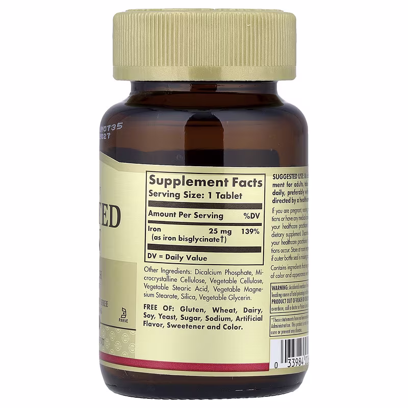 | DV = Daily Value †Some iron supplements cause gastrointestinal irritation and constipating effects. This unique form of chelated iron (iron bisglycinate) is formulated for enhanced absorption and is gentle on your system. |