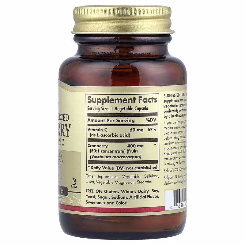 Solgar, Cranberry with Vitamin C, Naturally Sourced, 60 Vegetable Capsules