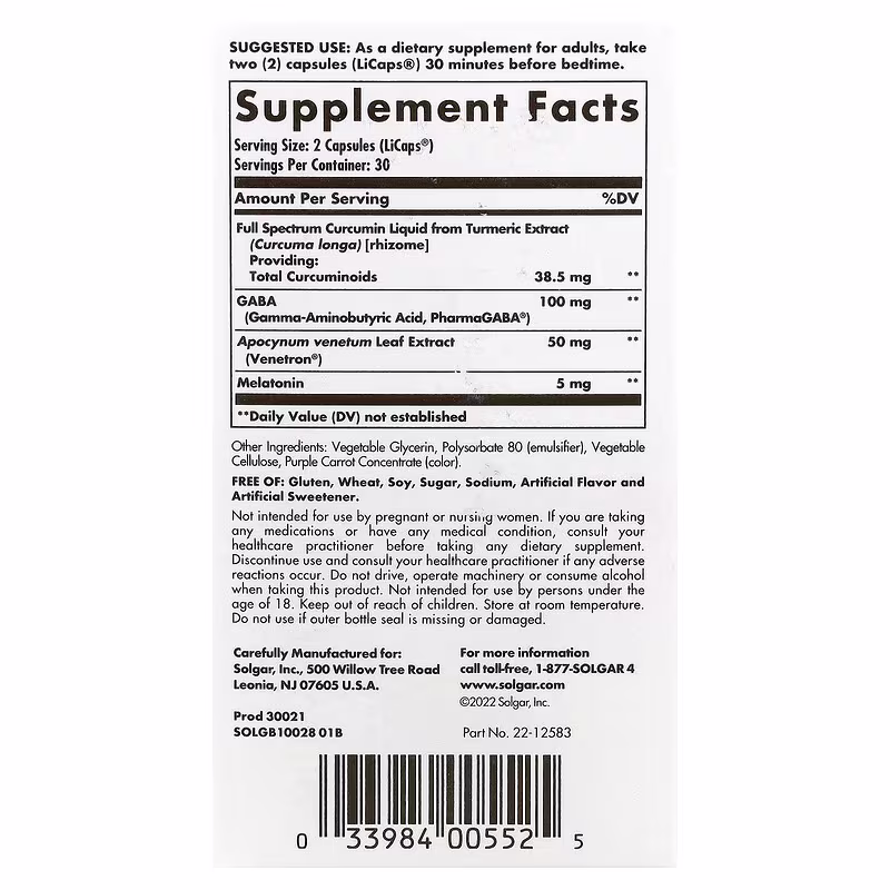 As a dietary supplement for adults, take two (2) capsules (LiCapsĀ®) 30 minutes before bedtime.