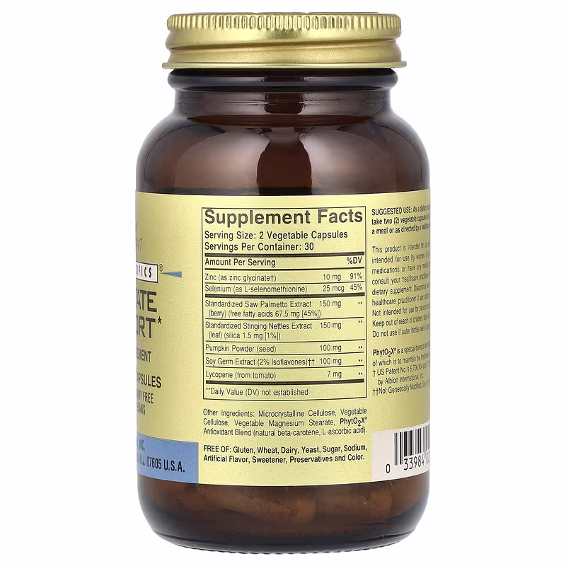 Solgar® Prostate Support is a proprietary formula combining nutrients and herbs, designed to provide nutritional support for the overall health of the prostate.