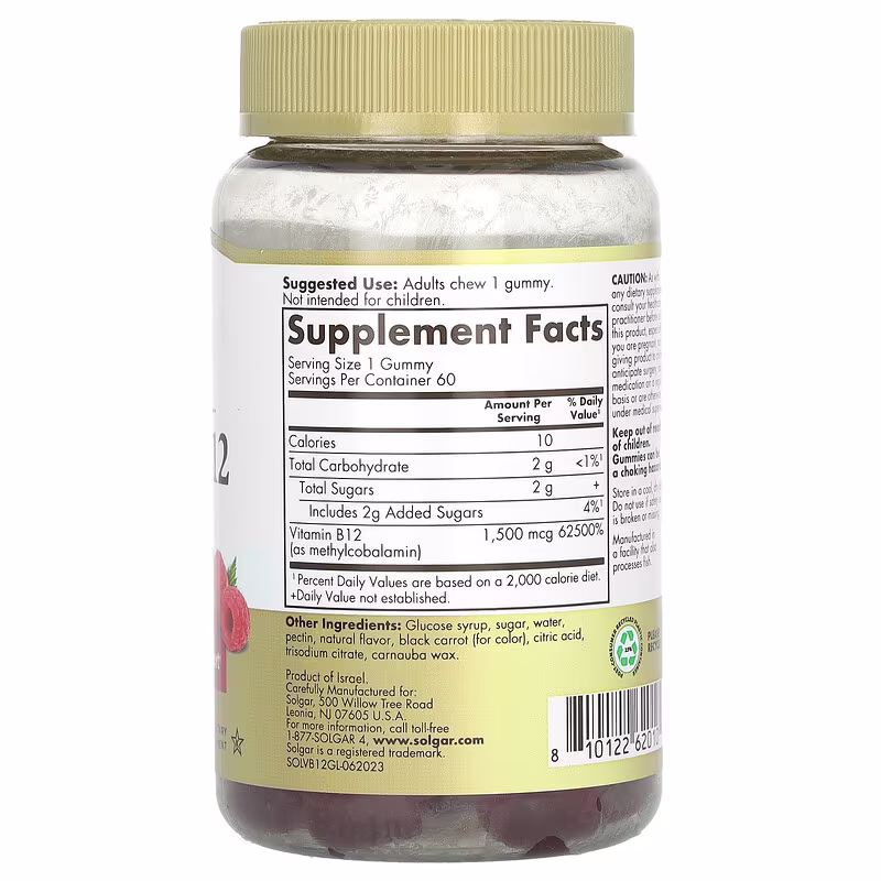 - 1500 mcg of B12 (methylcobalamin) in just one gummy.