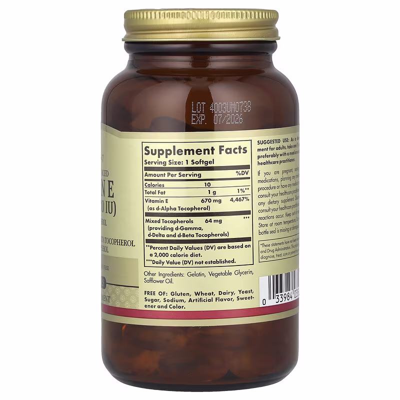 Solgar, Vitamin E, d-Alpha Tocopherol Plus d-Gamma Tocopherol, d-Delta Tocopherol and d-Beta Tocopherol, 100 Softgels