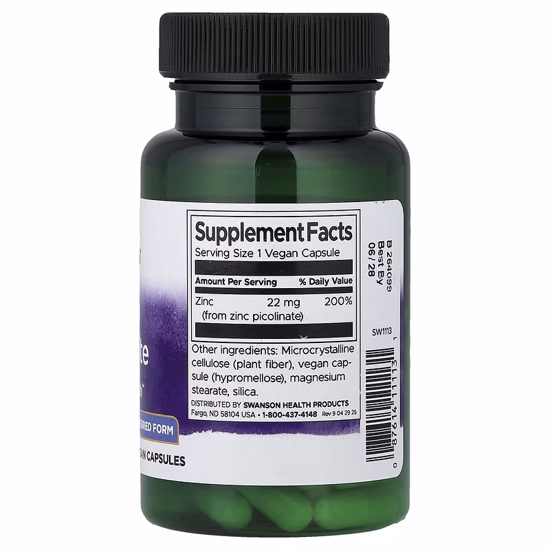 Swanson, Zinc Picolinate, 22 mg, 60 Vegan Capsules