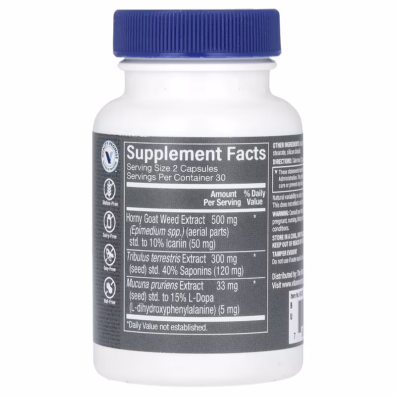 In addition to 500 mg of horny goat weed, The Vitamin Shoppe® brand Horny Goat Weed Complex features a blend of other libido-supporting herbs such as Tribulus and Mucuna pruriens extracts.