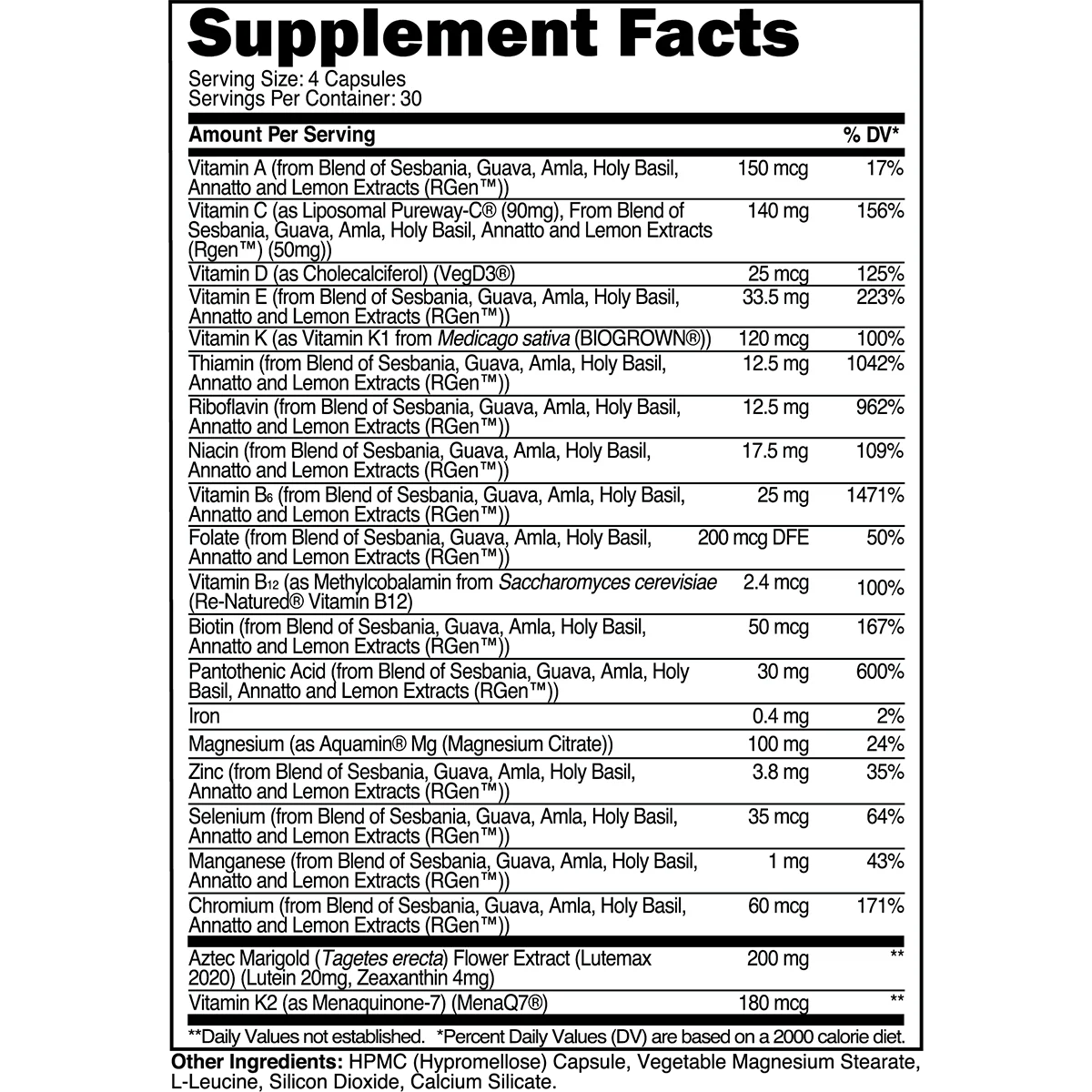 It also includes additional sources of plant-based vitamins K1, K2, and D3, which work synergistically to promote skin health, immune function, bone integrity, cardiovascular function, and more. This formula goes the extra mile with LuteMax 20/20®, a patented antioxidant complex featuring 20 mg of lutein and 4 mg of zeaxanthin to promote ocular health/vision and overall cellular integrity.