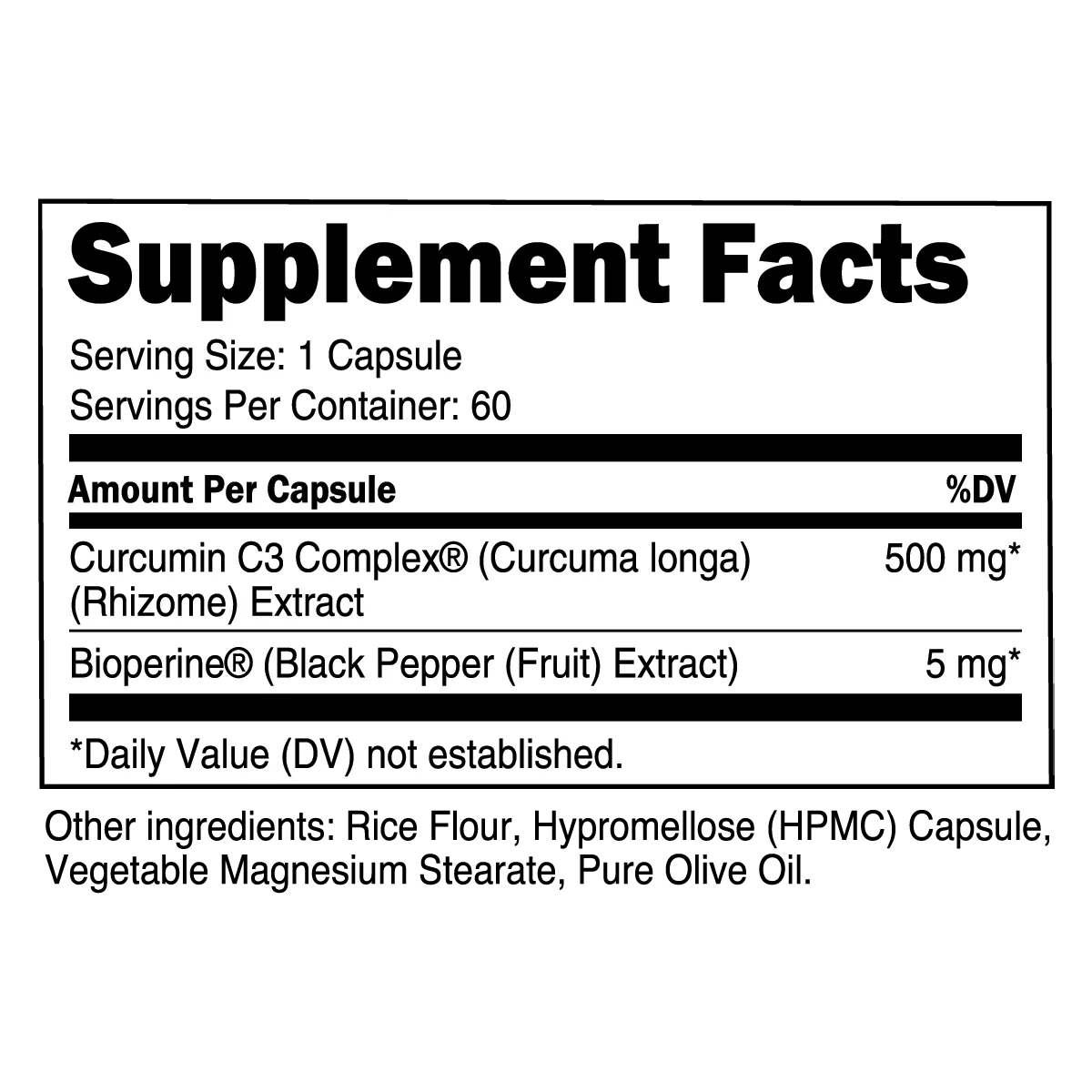 Patented Curcumin C3® Complex enhanced with BioPerine® for inflammation control, joint comfort, and overall health.