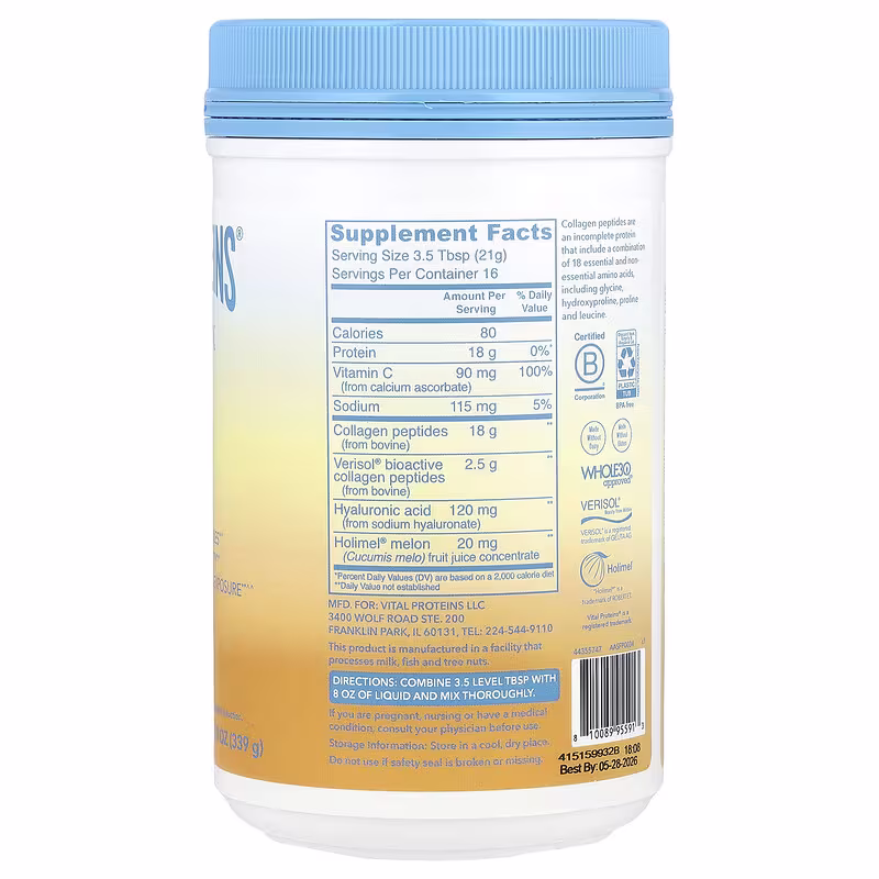 This Skin Complex works from within. It contains Verisol® Collagen to help reduce fine lines and wrinkles and Holimel® to help support healthy skin after sun exposure.∧∧ Mix one serving in hot or cold liquids and enjoy daily.