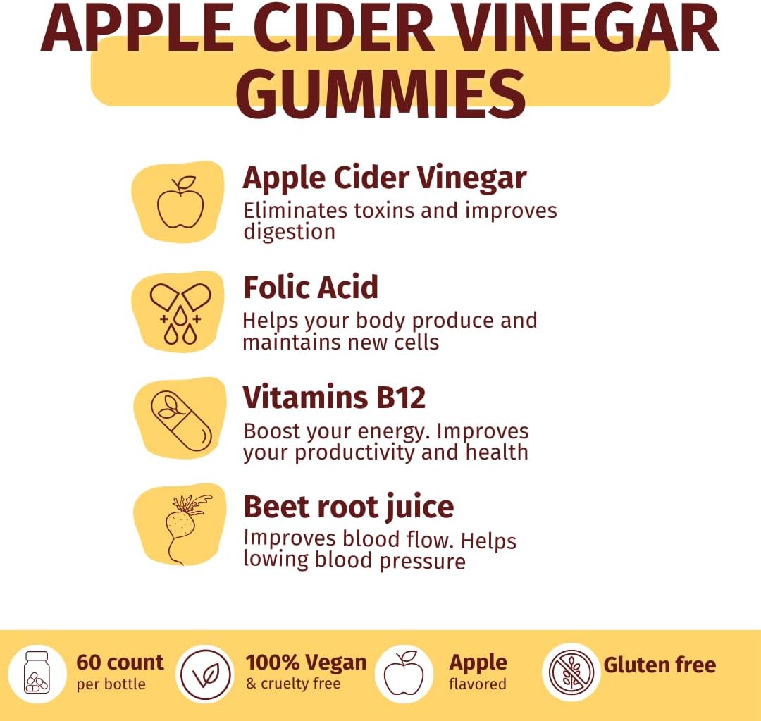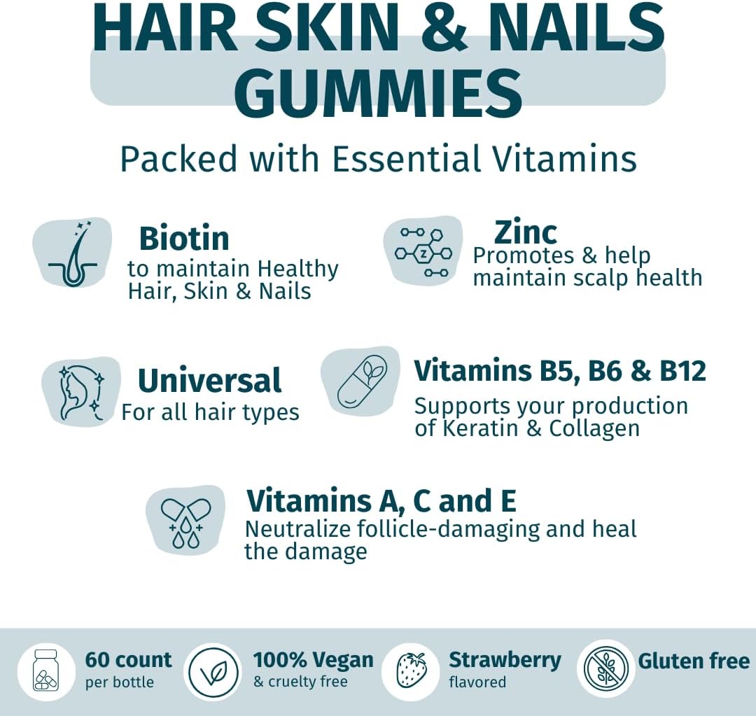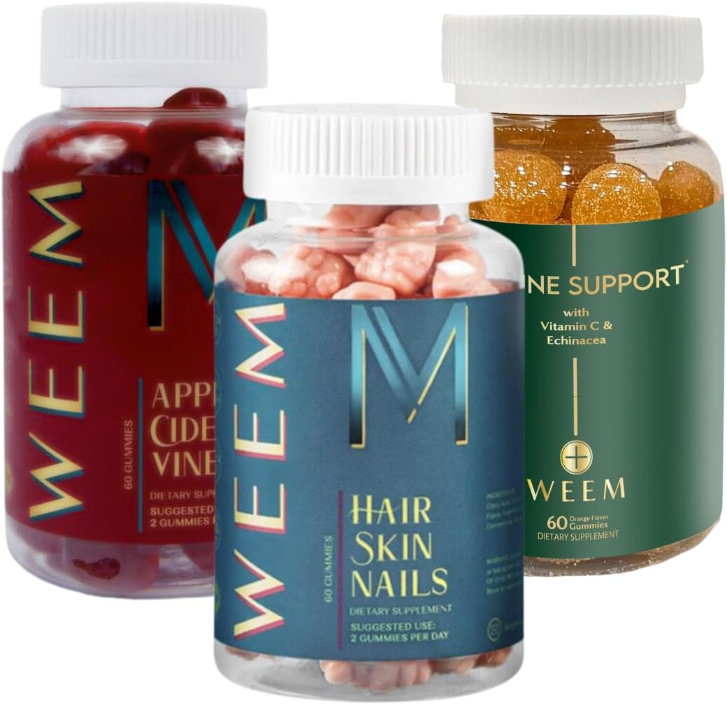 - SAVE WITH OUR BUNDLE 1. Apple Cider Vinegar Gummies: Folic Acid, Vitamin B12 – Premium Detox & Weight Supplement (60 Count) 2. Hair Skin and Nails Gummies: With Biotin, supports Faster & Healthy Hair Growth, Stronger Nails, Healthy Skin (60 count) 3. Immune Boost: Elderberry, Zinc, Vitamin C – Health System Support – Alternative to Pills, Supplement for Kids and Adults (60 count)
